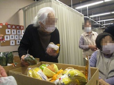 ご近所の八百駒様やスギ薬局様、C&S様のご協力のもとお買い物に勤しむご利用者の皆さんの商品を選ぶ目はキラキラしていて楽しそうです。