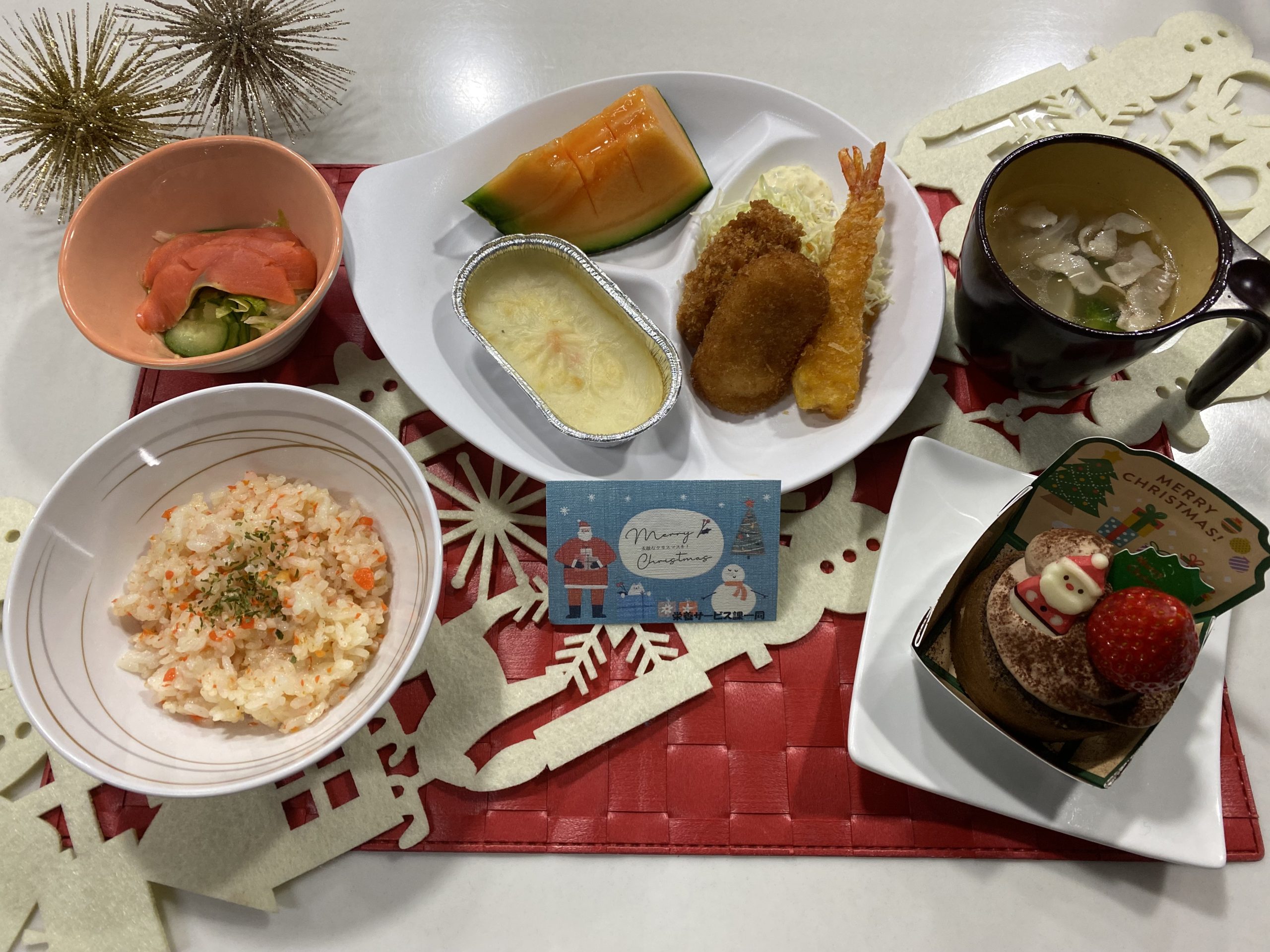 12月25日の夕食にはクリスマスメニューを提供致しました。