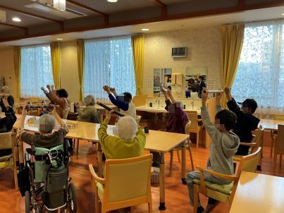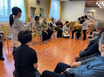 :お帰り前体操体験:棒を使用し、はりきって大きな声を出しながら、、いち・にー・さん・・じゅう・・と数を数えたり、今回は🌺「ハワイ航路」を唄いながらリズムに合わせて、皆さんで身体を動かしました🎶
