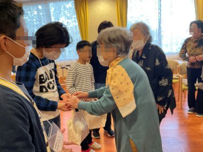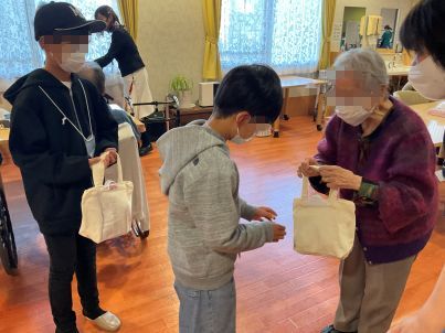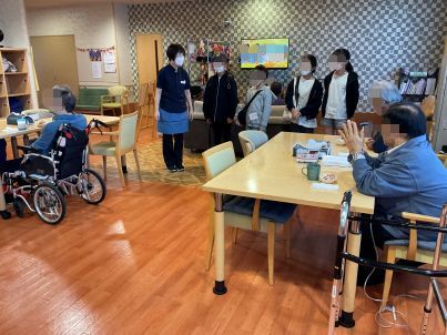 最後に一人ずつ利用者様より、「ありがとう。」と声を掛けていただきました。短い時間でしたが、「やっぱり子供っていいね。かわいいね。」「元気が出るよね。」と皆さん喜ばれ、とても良い時間を過ごさせていただきました!!興味を持っていただき、十年後、、、ぜひ(^_-)-☆お待ちしてます。
