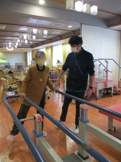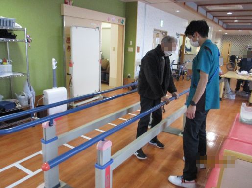 平行棒という器機は立ち上がりの練習や歩行練習、バランス練習を行う為に使用します。