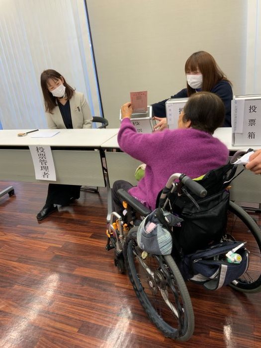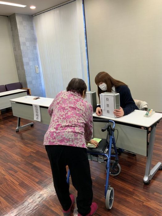 ご自身での投票は難しいご入居者も職員がお手伝いさせていただき、