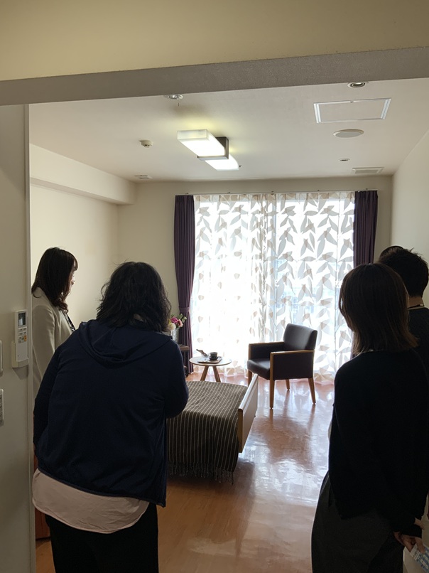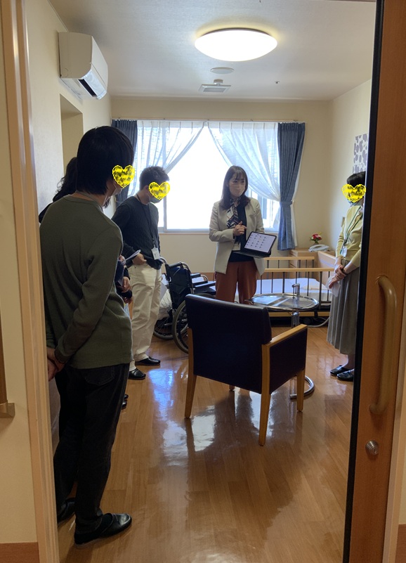 介護付有料老人ホーム・ショートステイ・デイサービス、デイサービスセンター弁天通りの共有スペースや居室をご覧いただきながら、生活の様子や日々の関わりについてご紹介させていただきました。