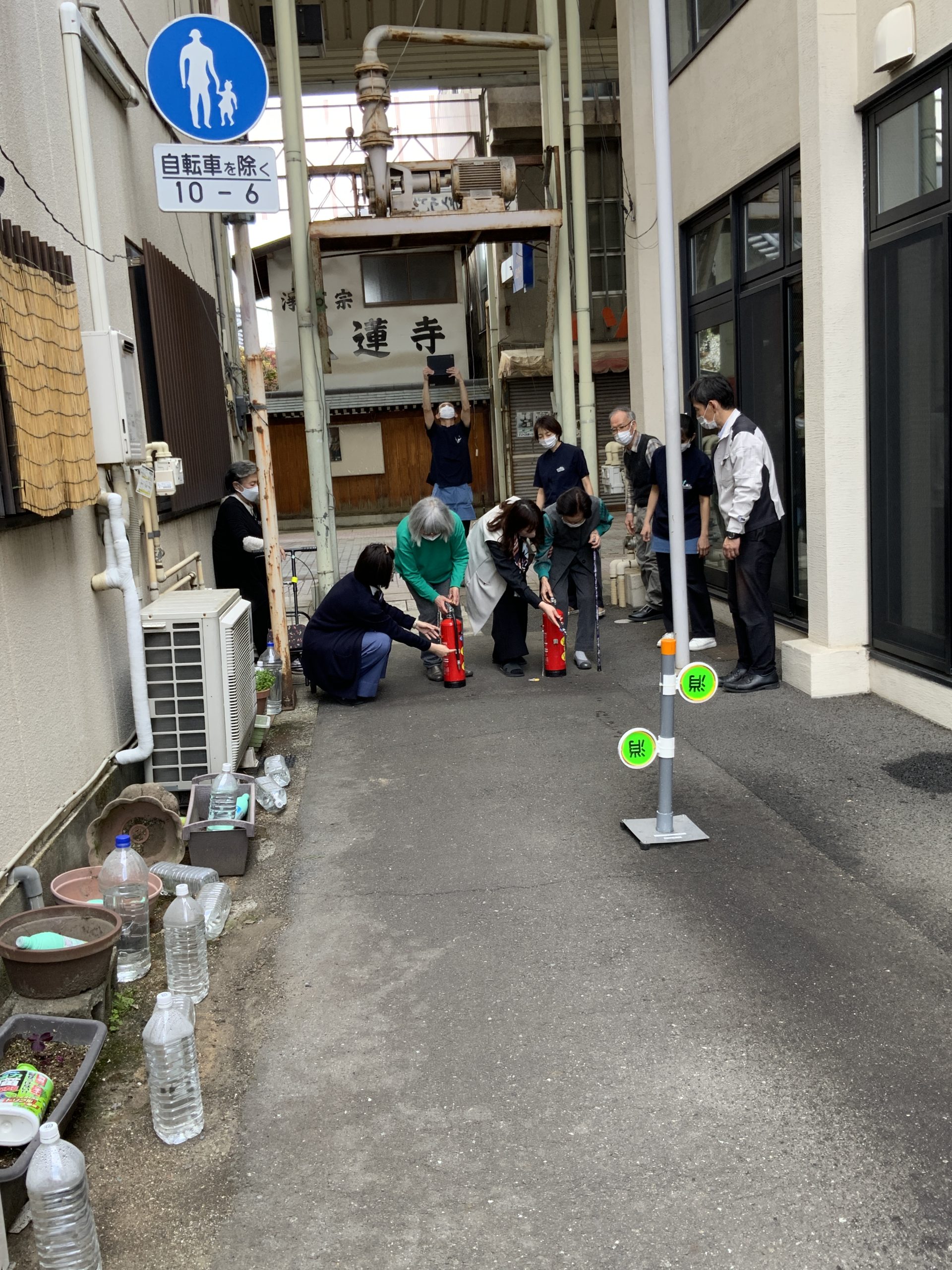 ご入居者・ご利用者の皆様にもご参加いただき、消火器の使用方法をご指導いただきました。