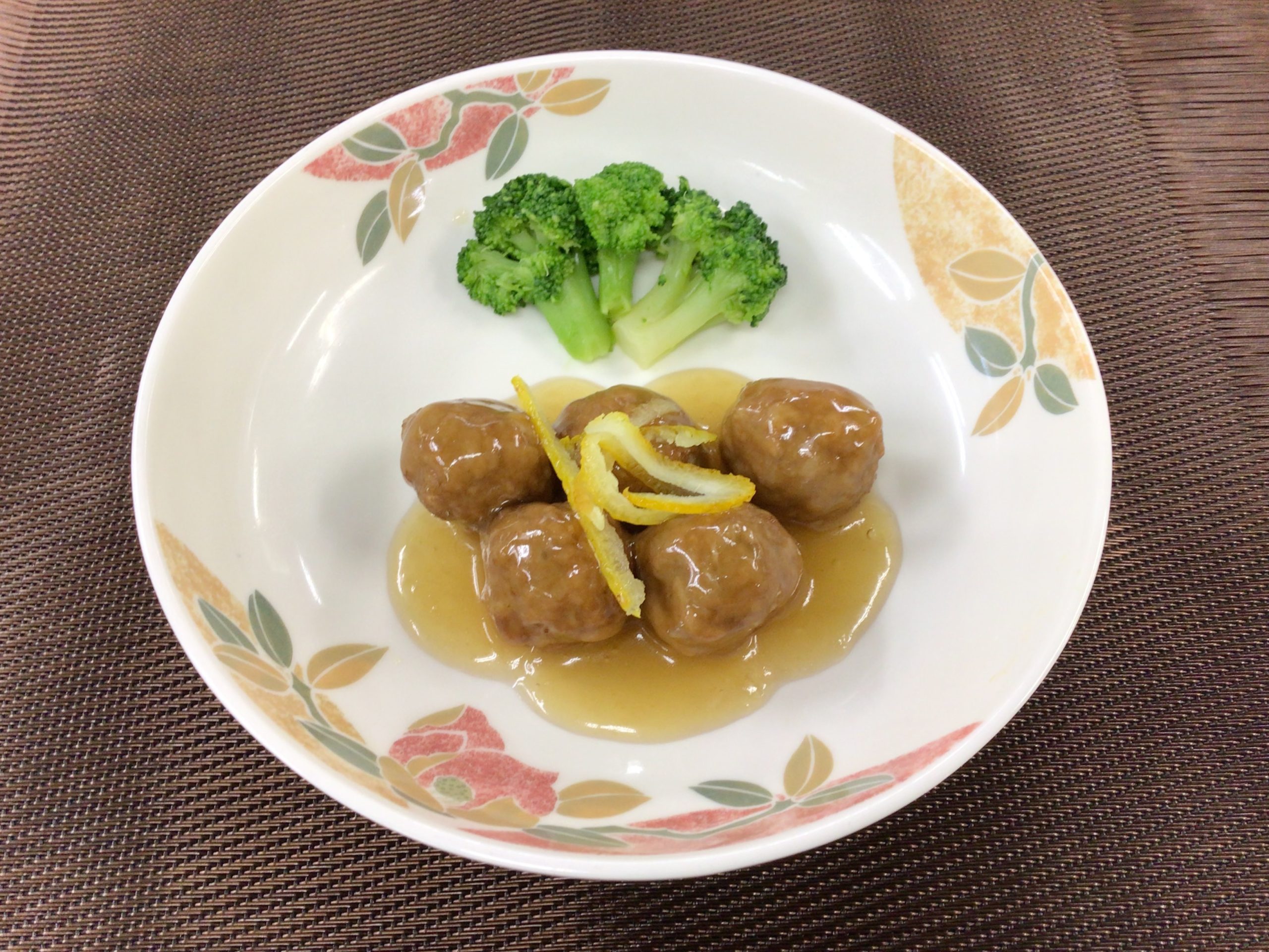 肉団子の柚子あん・・・トマトや醤油味の肉だんごが多くありますが、和風だれのなかに柚子を刻み柚子を入れ、風味を楽しめる一品です。香りづけとして使われる柚子の皮ですが、果汁の約4倍のビタミンCが含まれているのも特徴です。