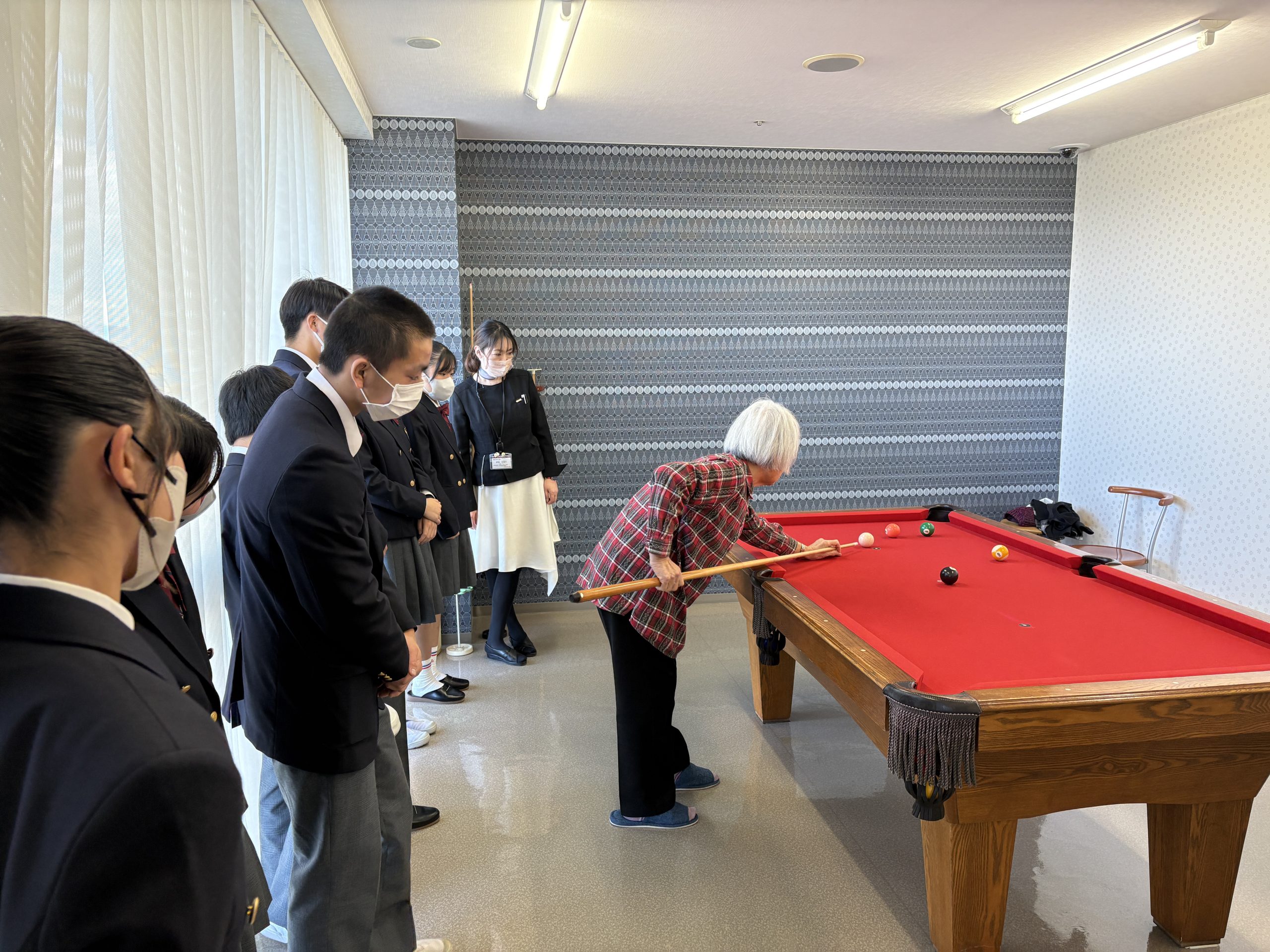 丁度、娯楽ルームへ行くとご入居者がビリヤードゲーム中でした!