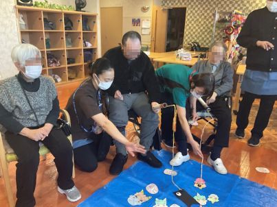 鬼は外へ行きましたので、今度は福を釣りましょう♪ということで、、30秒集中して、福釣り、誰が一番福を釣るのか競争しました🎣「もっと右~!もっとこっち~!」など声の掛け合いもあり、盛り上がりました(^^♪なかには、、笑顔で鬼だけを真剣に釣っていた方もいました( ´∀` )