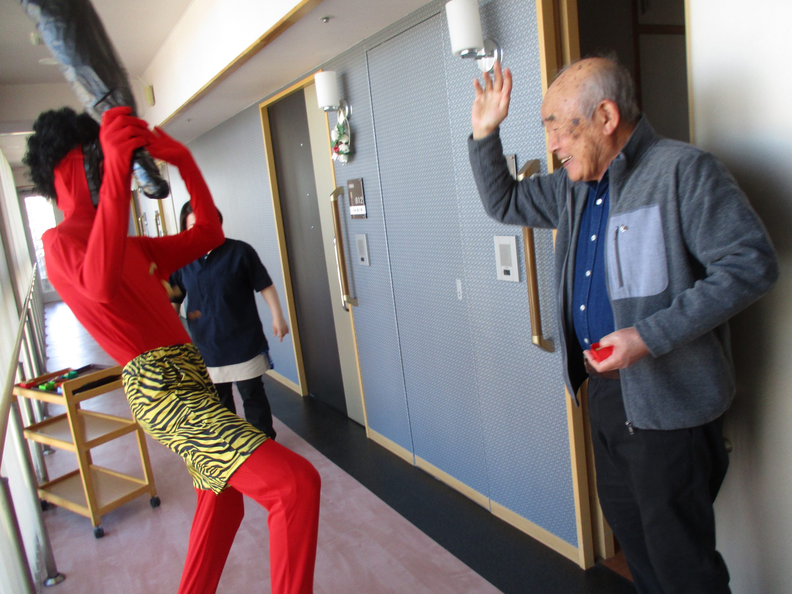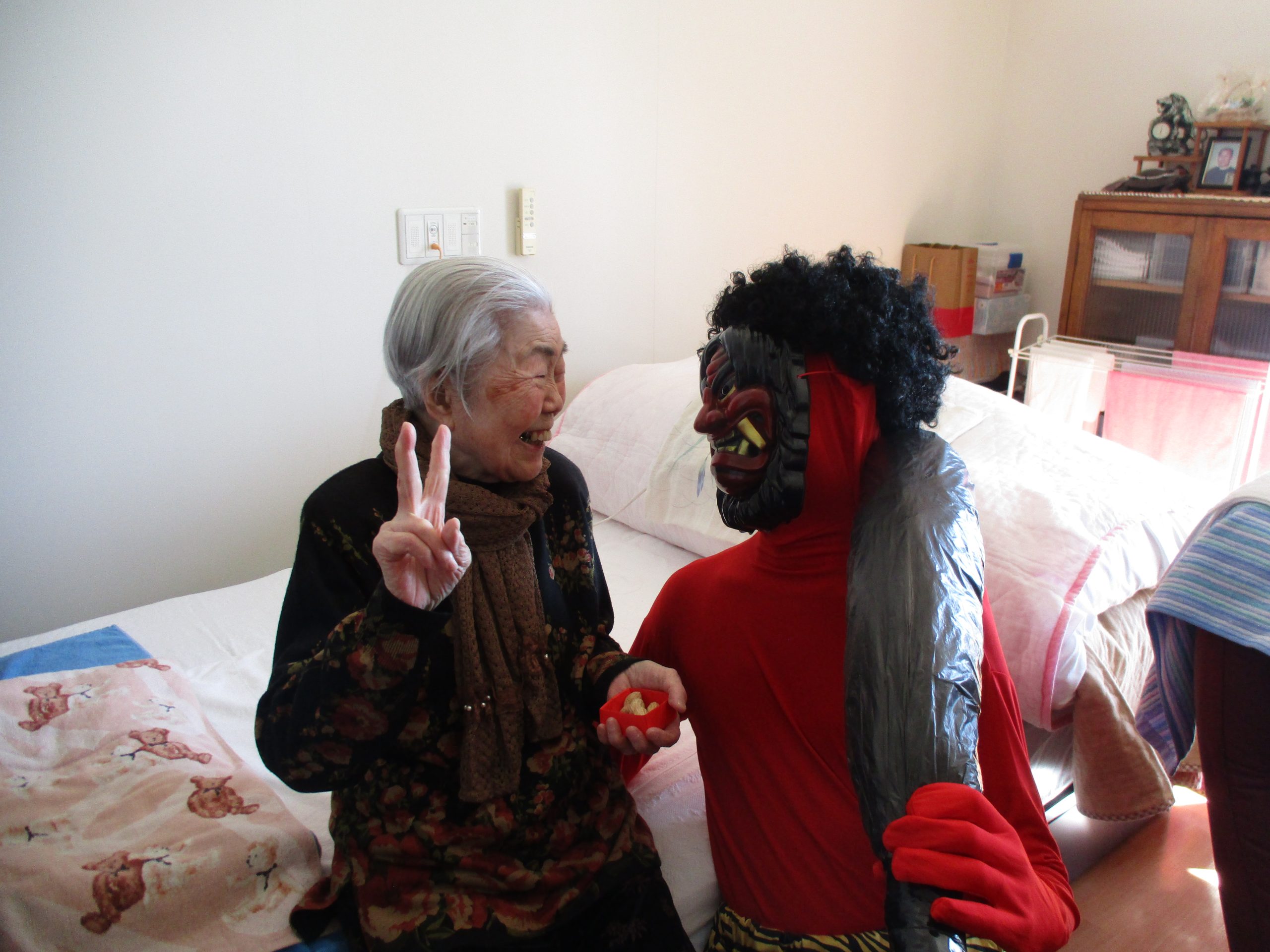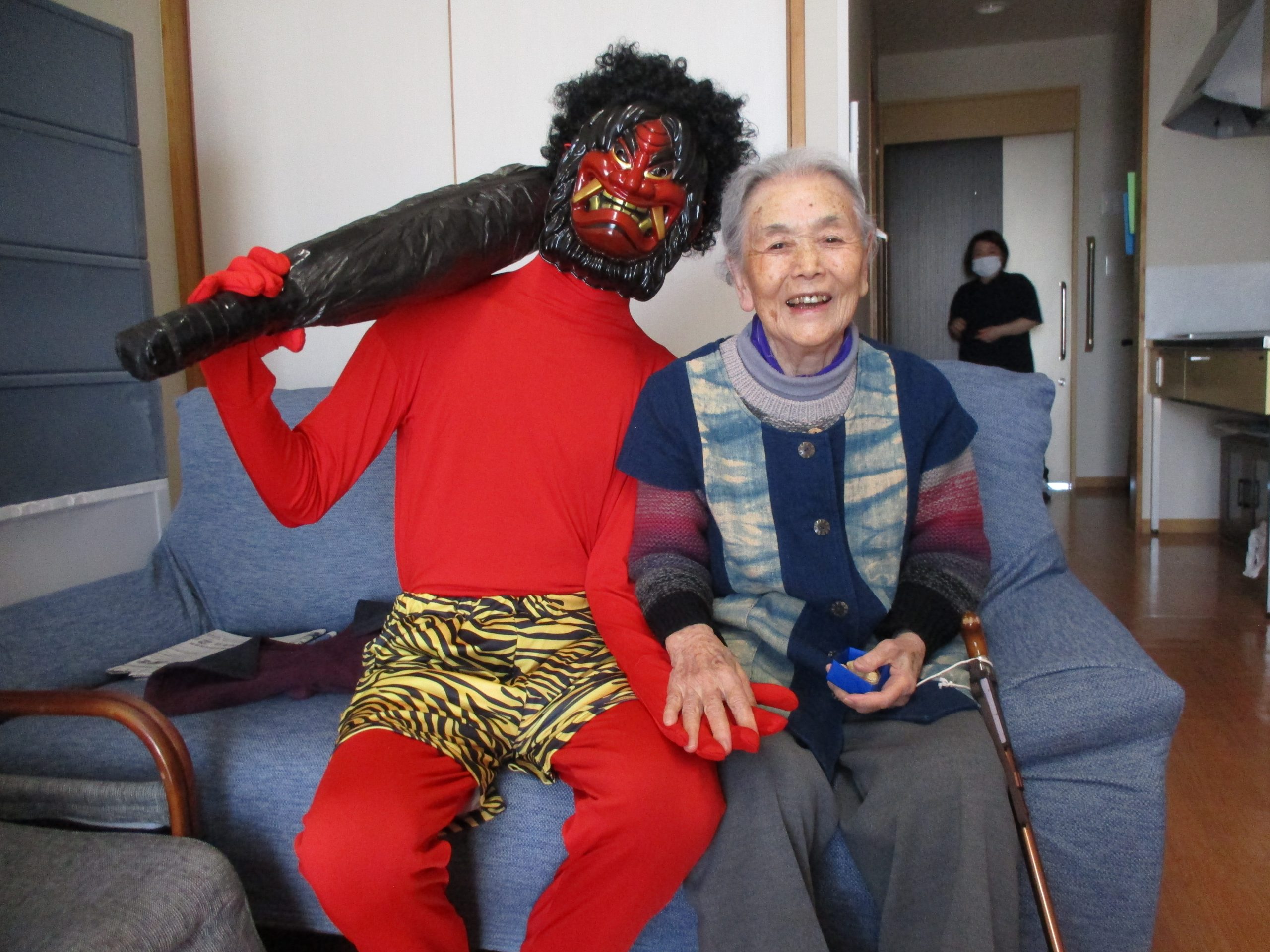 なんとも礼儀正しい鬼の来訪に、ご入居者は大笑いでお迎えしてくださいました(笑)