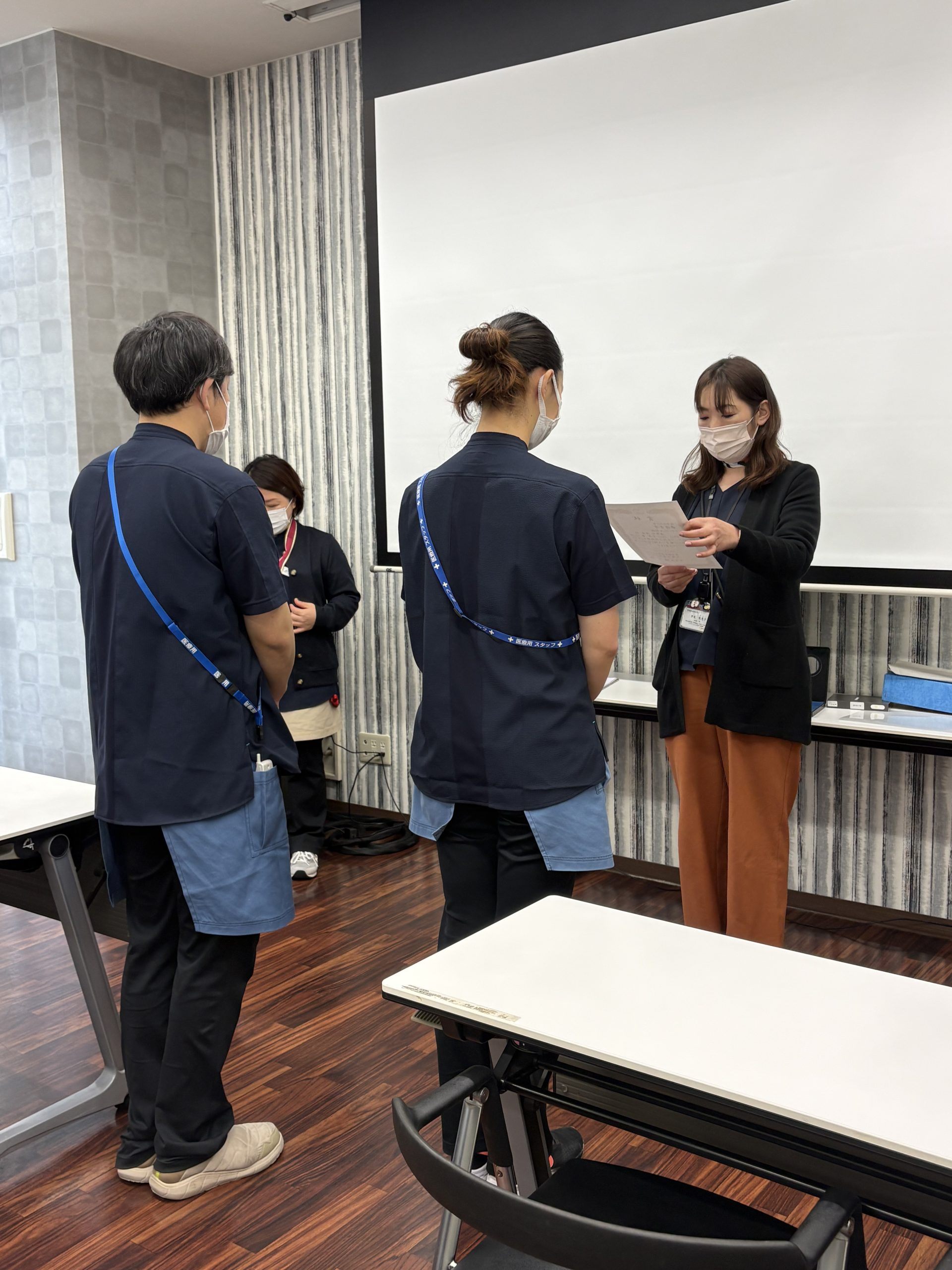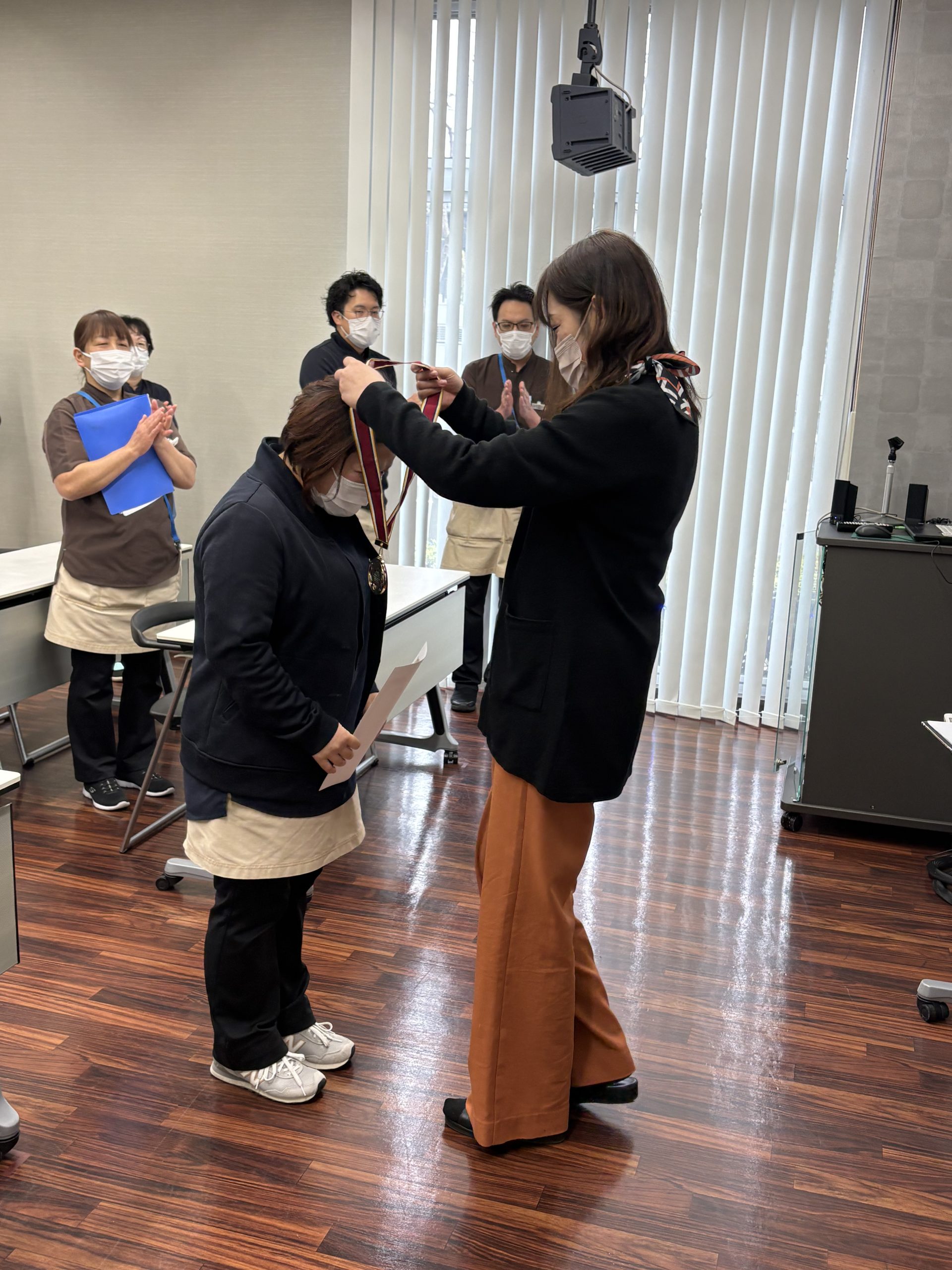 朝礼で表彰しました。短い期間ではありましたが、一生懸命頑張っている姿を見ていたので、この受賞に私が感極まりそうでした🥲