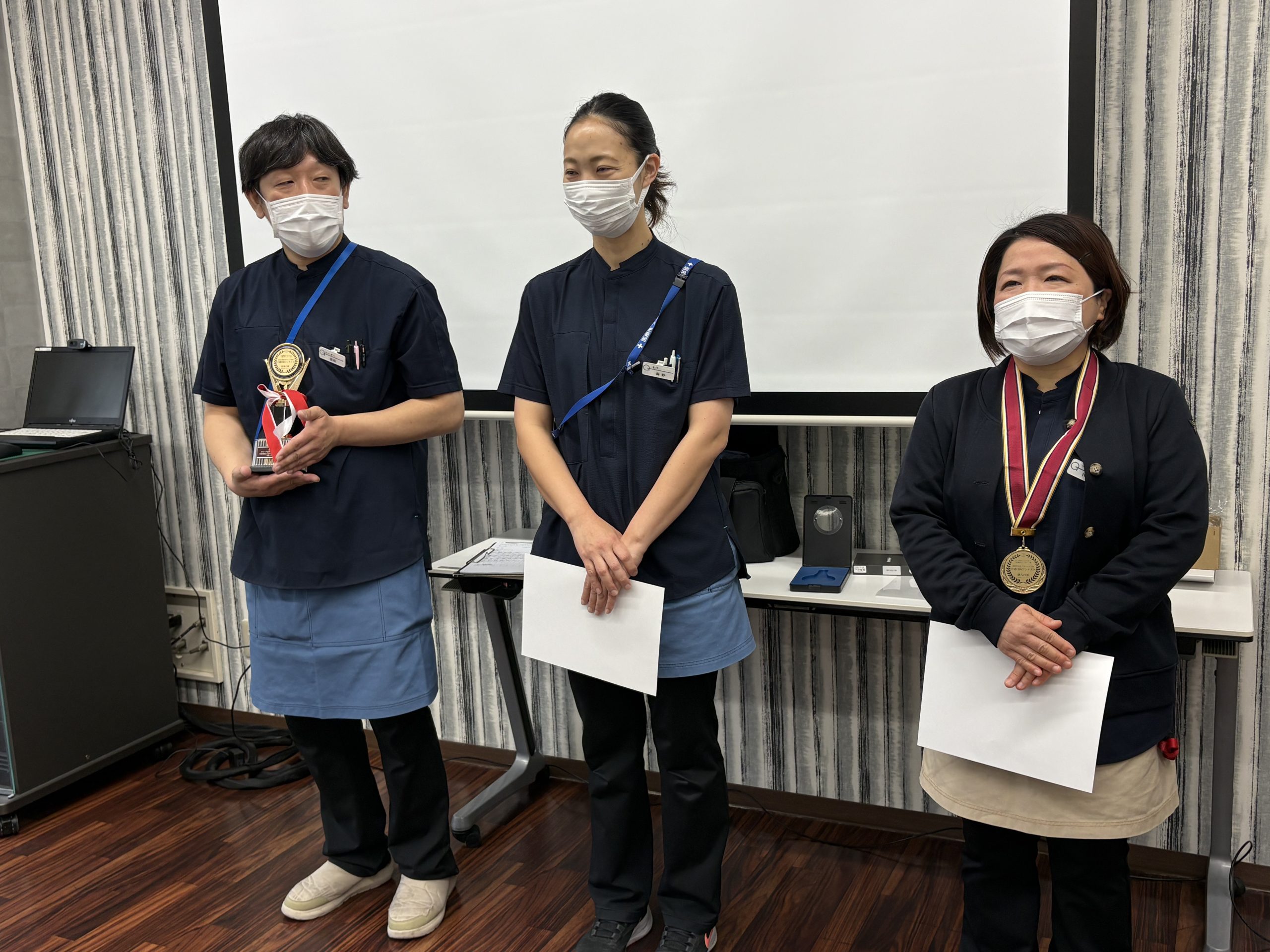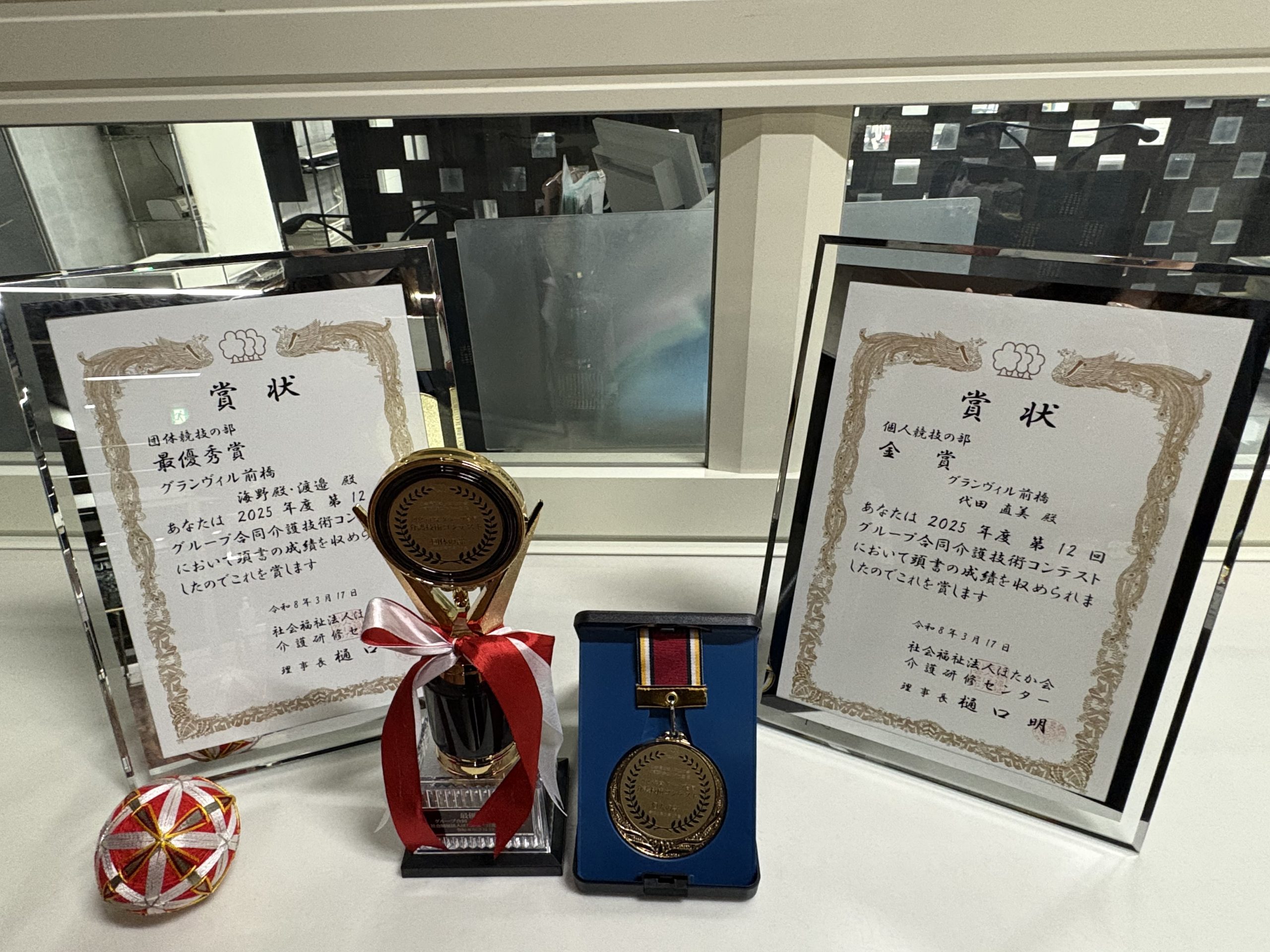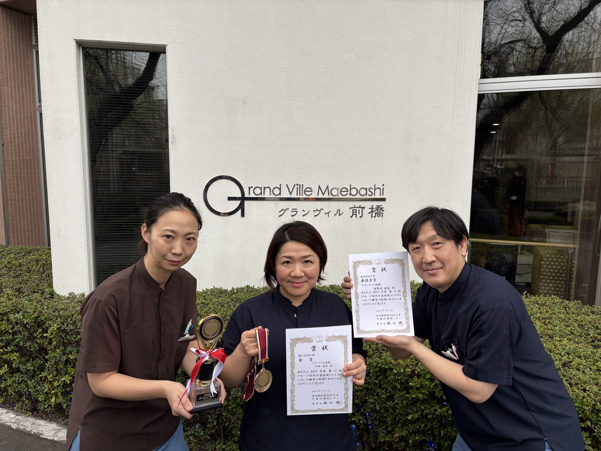 出場前から「頑張ってね。」受賞後には「おめでとう。良かったね。」と、本当に多くの職員の皆さんから声をかけて頂いたり、モデルとなり協力と意見を頂きました。一人ではないという心強さ、言葉の持つパワーを実感し、グランヴィル前橋のチームの一員として出場出来た機会に感謝します。更に支援の幅が広くなる経験をさせて頂きました。今後も経験を積み重ねて参ります。ありがとうございました。