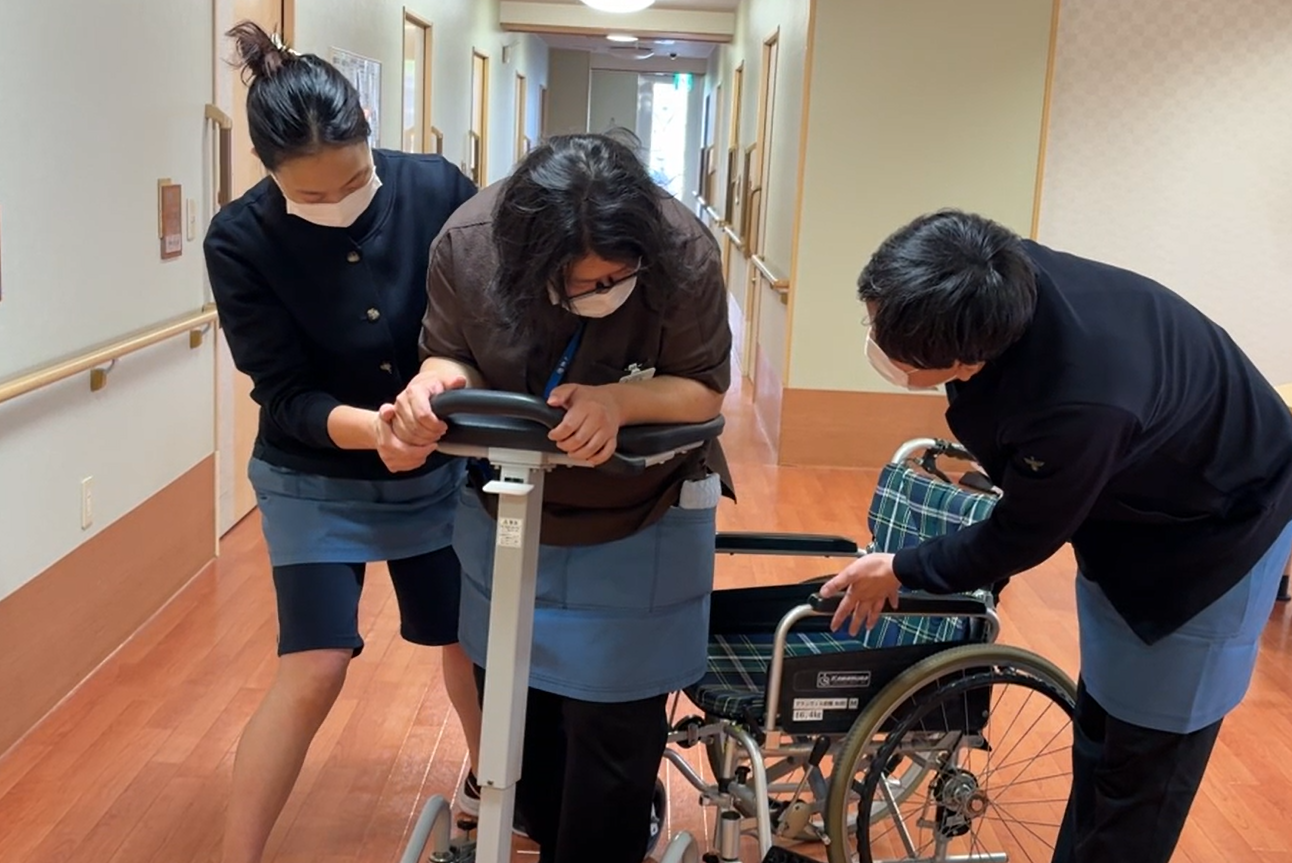 出場の選出に「なぜ私?」と強く思いましたが、出題事例を読み込んで、現場スタッフと基盤を作り経験からの意見を考え、試行錯誤しながら技を組み立てて良いものを作り上げていく練習時間の確保の難しさ。そして実技を限られた時間と極度の緊張の中、自然にスムーズに対応できるようになるまでの精神力を養い、当日の動画撮影で練習の成果を十分に発揮できるかどうかという自分との闘い。より良いと思う介護技術を求め練習してきた施設が集まったコンテストの視聴や審査ができる体験は、とても貴重だと感じ、今回得たものの大きさを感じました。ありがとうございました。