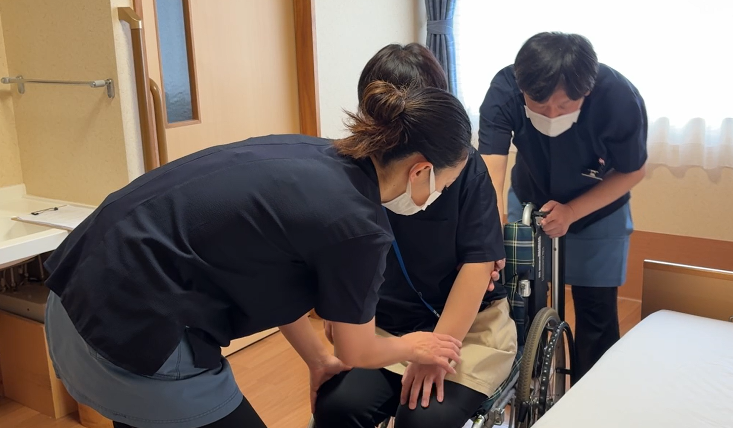 介護技術コンテストの課題を練習をしていくうちに、上席の方々や職員から頂く言葉に遣り甲斐と楽しさが増えてきました。