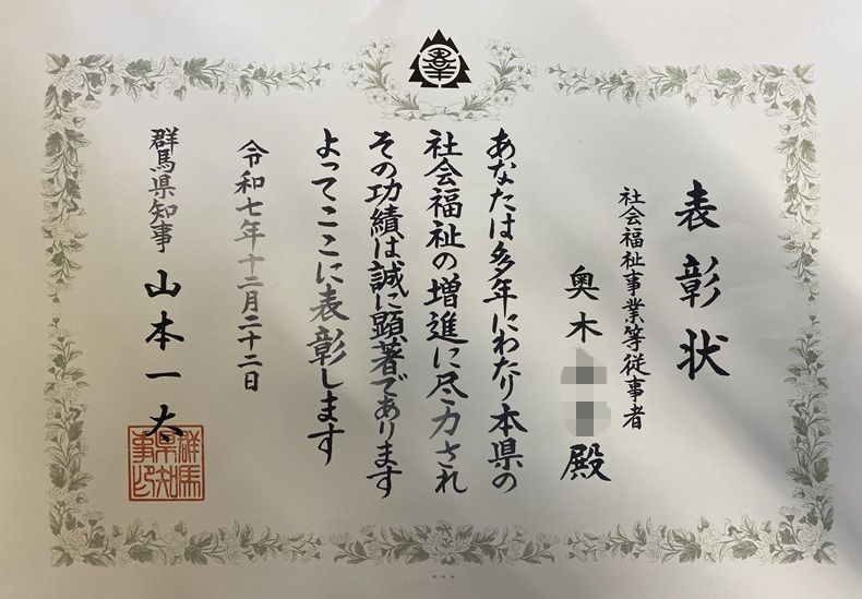 今回は、群馬県社会福祉功労賞の受賞者をご紹介します。