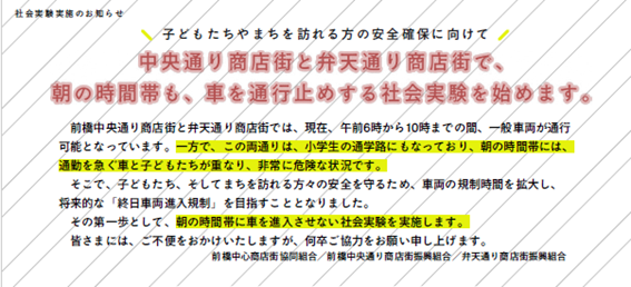 社会実験実施に伴う車両通行止めについて